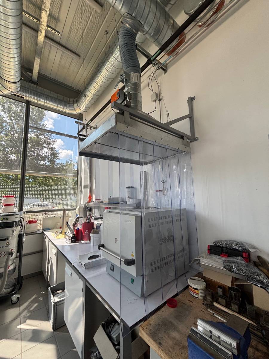 Pour ce projet, nous avons développé des dispositifs d’aspiration parfaitement adaptés aux différents équipements du laboratoire. Ces hottes permettent une extraction ciblée et performante, limitant l’exposition des salariés aux vapeurs, fumées ou particules générées lors des manipulations.